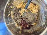 Add in your fruit, chocolate chips, and chia seeds. Mix again.